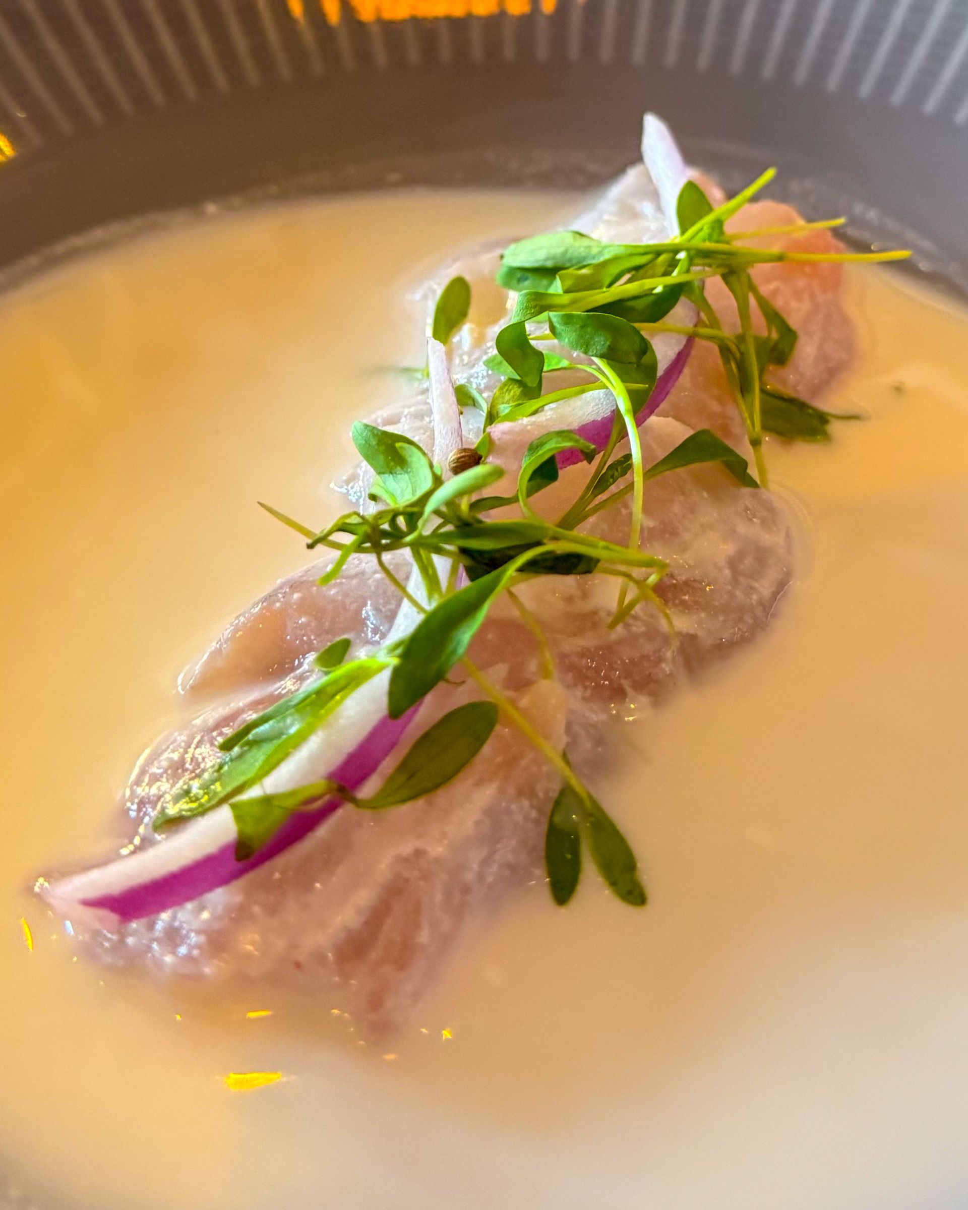 The Snapper Ceviche is bright and refreshing, prepared with coconut leche de tigre, red onions and cilantro, making it an ideal start to a Florida evening.