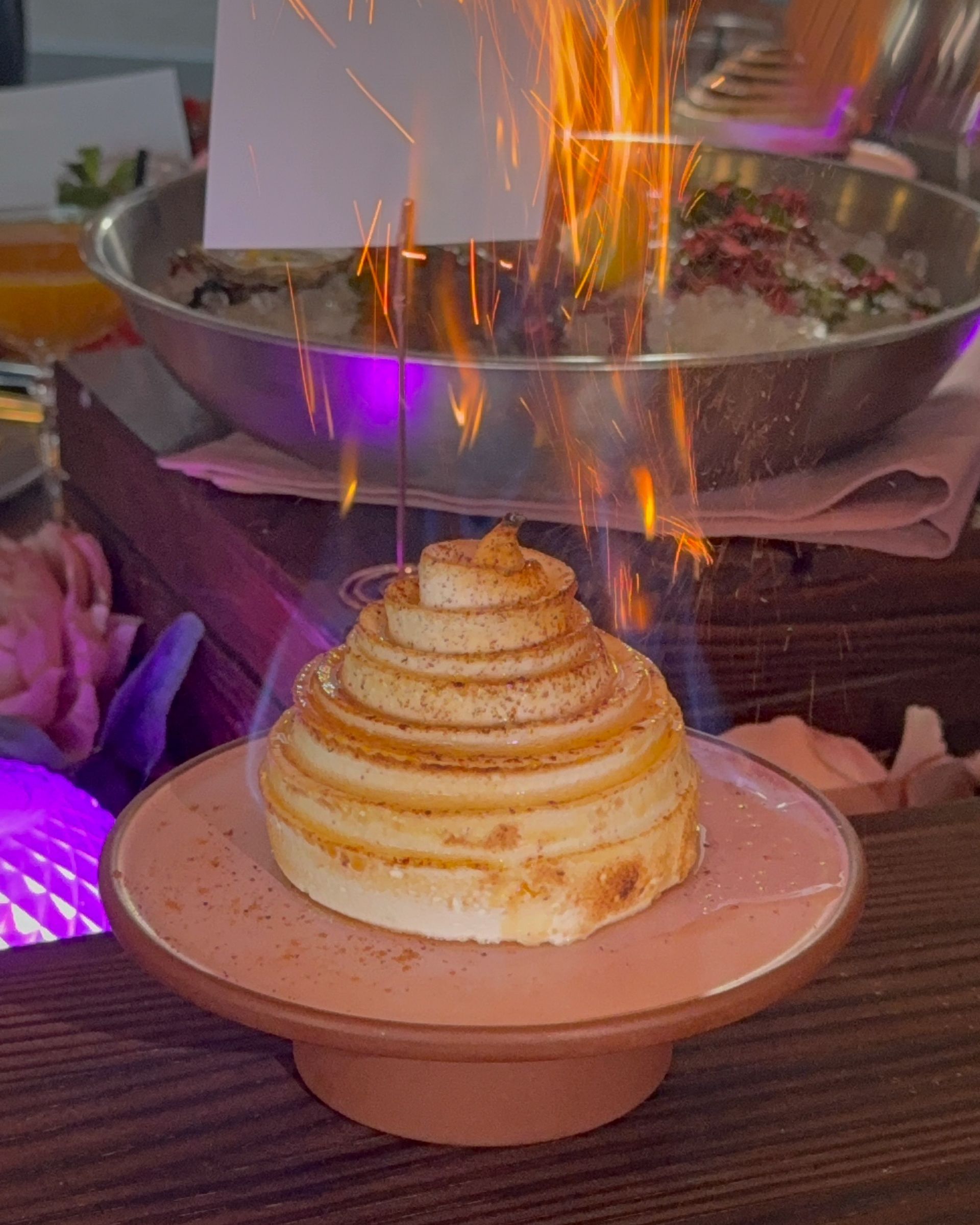 Dessert at Four Flamingos continues the restaurant’s celebration of local flavor, with one standout that perfectly captures its spirit. The Baked Florida dessert is a modern, theatrical take on a classic, featuring frozen Key lime pie paired with raspberry gelée and topped with flambéed meringue.