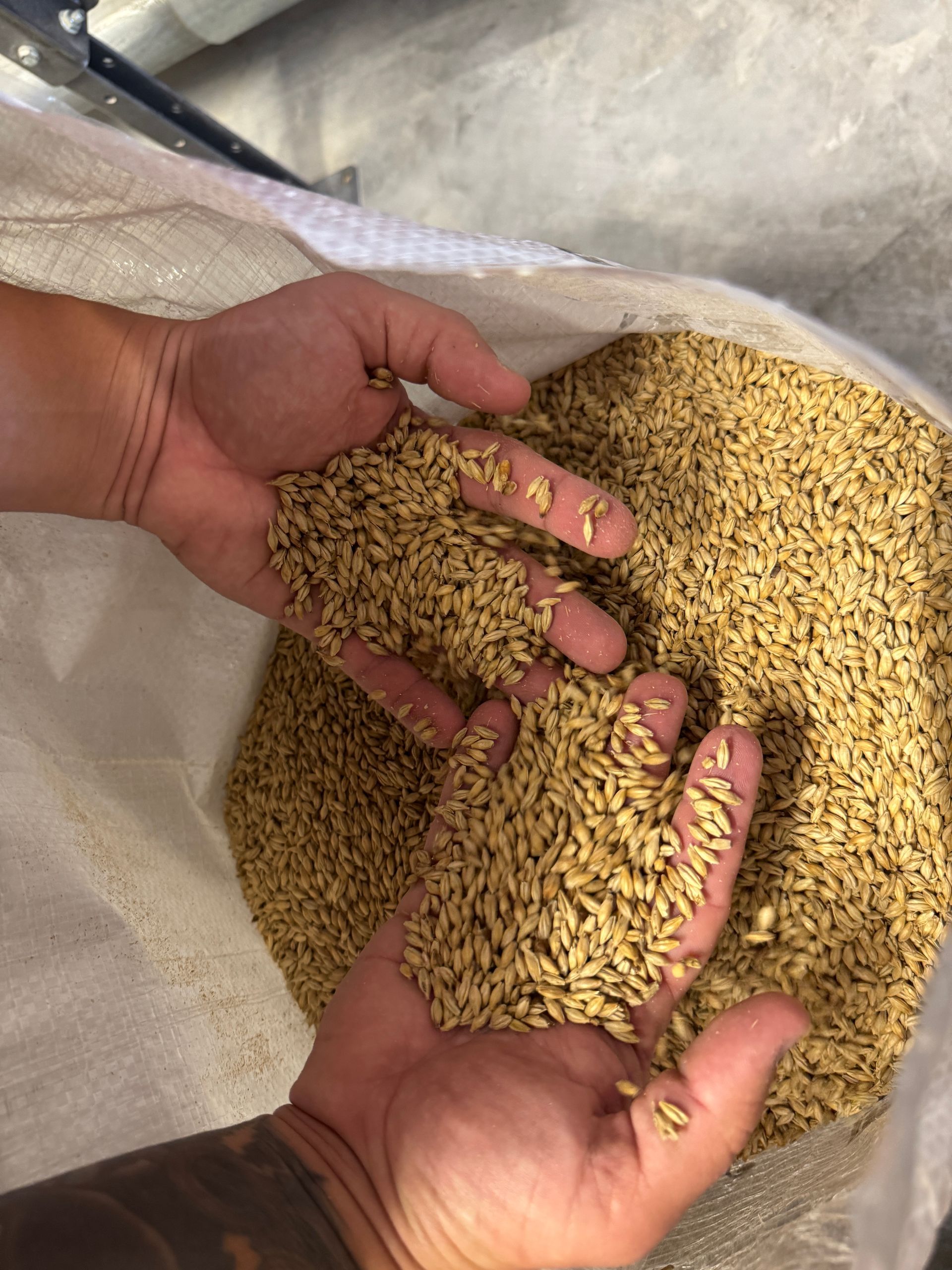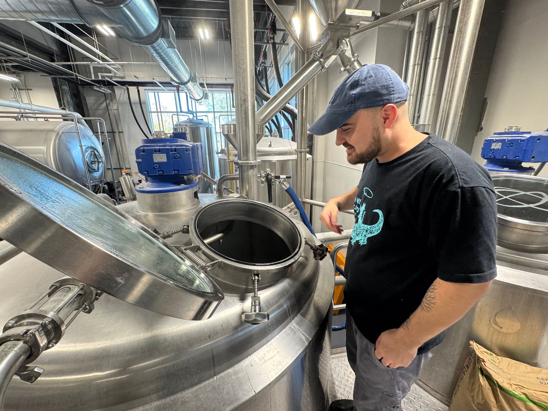 Mega collab beer production ingredients and visiting brewers observe the brewing process at Home State Brewing Co.