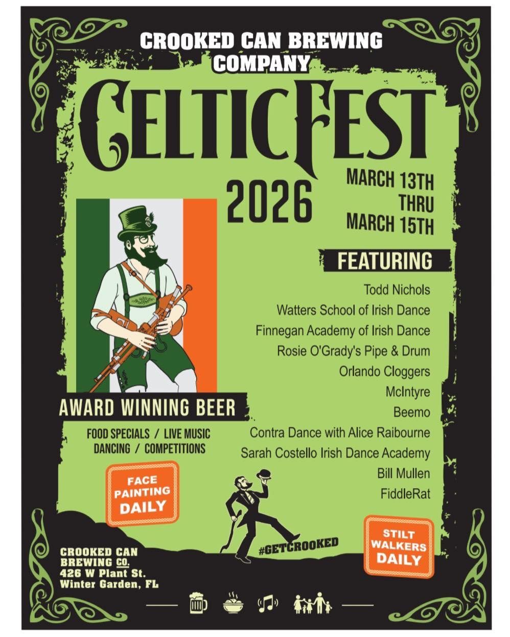 Celtic Fest returns to Crooked Can for a full weekend of St. Patrick’s Day fun at Plant Street Market. The three-day celebration will feature award-winning Crooked Can beers, food specials from market vendors, live music and Irish dance performances throughout the weekend. Guests can also expect family-friendly entertainment including face painting and stilt walkers. A detailed daily schedule and food offerings will be announced soon.