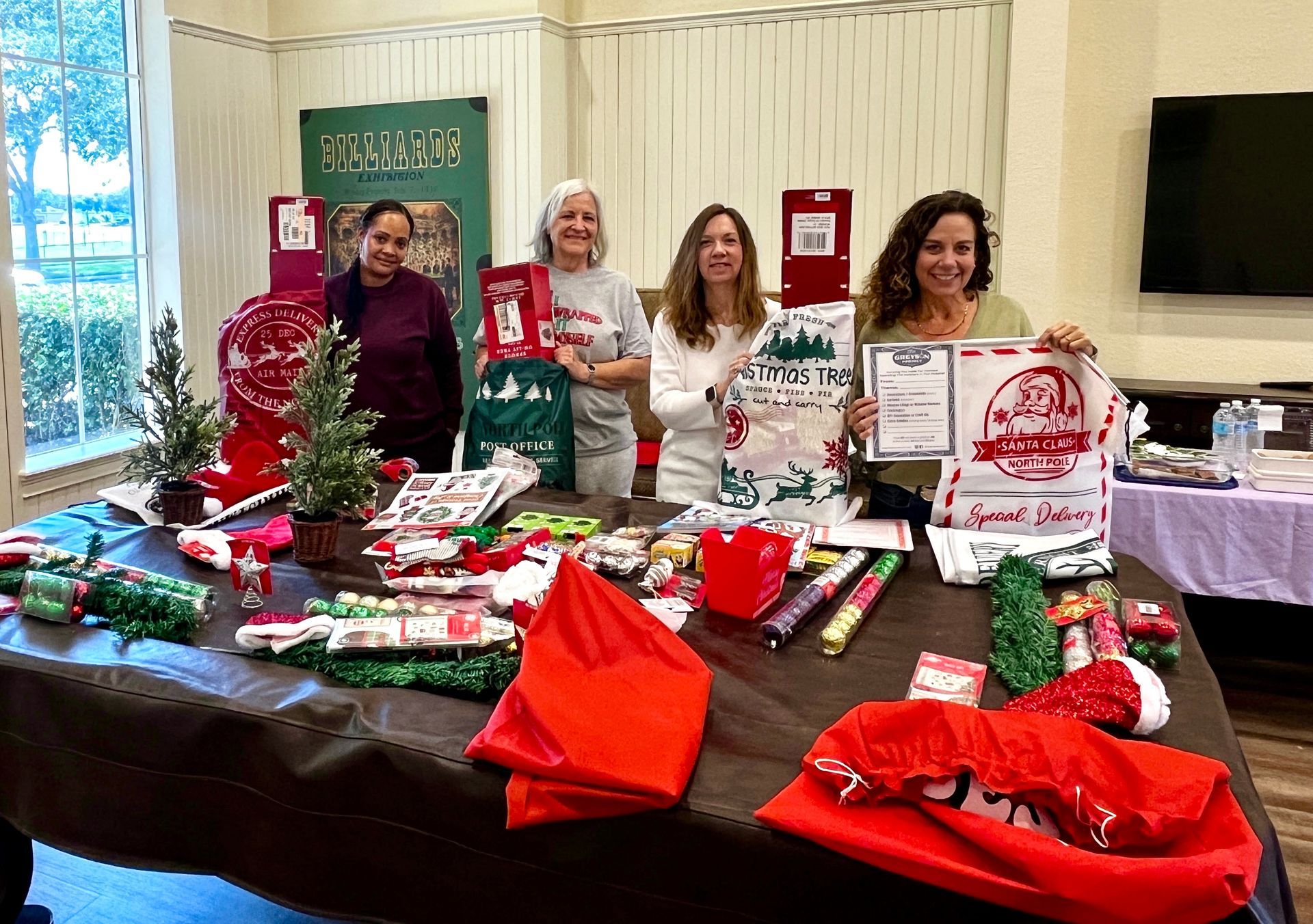 In their December meeting, the ladies took time to work on their vision boards for the upcoming year, but they also brought donations and worked together to assemble nine festive holiday decor bags for The Greyson Project!