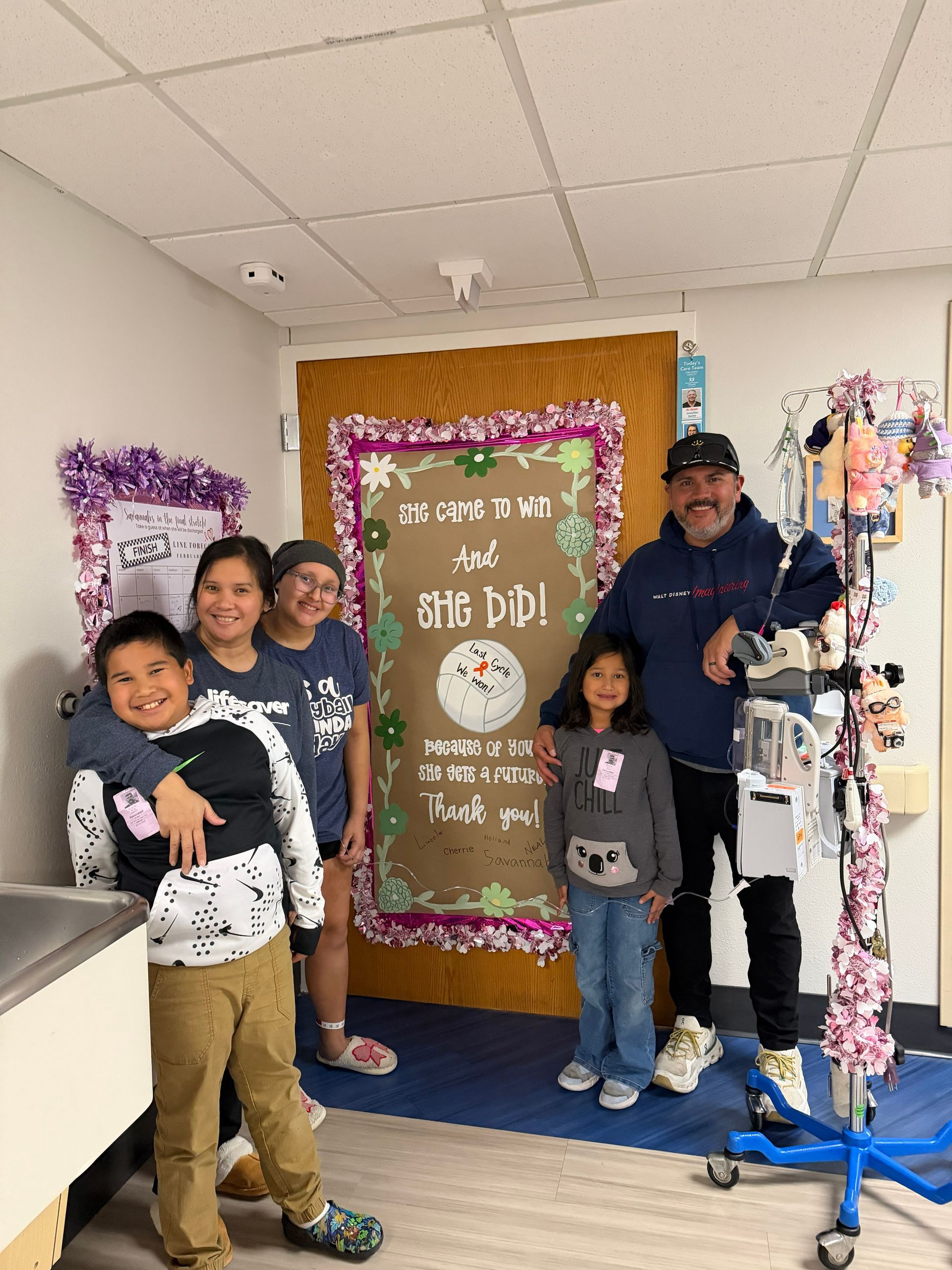 Early on, Savannah’s family was told treatment could involve six to eight rounds of chemotherapy. Each round would include about 30 days of inpatient care, followed by a week at home before the next cycle began. After additional bone marrow and genetic testing, her doctors adjusted the plan. Savannah responded strongly to treatment, reached remission after cycles 1 and 2, and her care team ultimately recommended four total cycles.