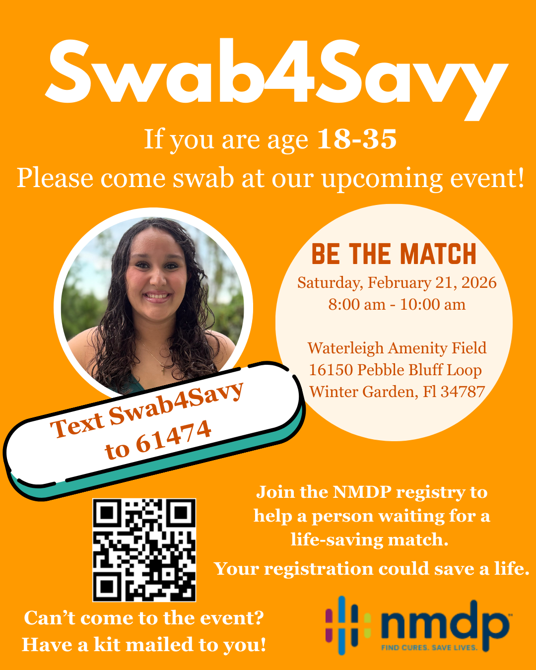 - Text Swab4Savy at 61474 to receive a kit at home if you are participating virtually or unable to attend