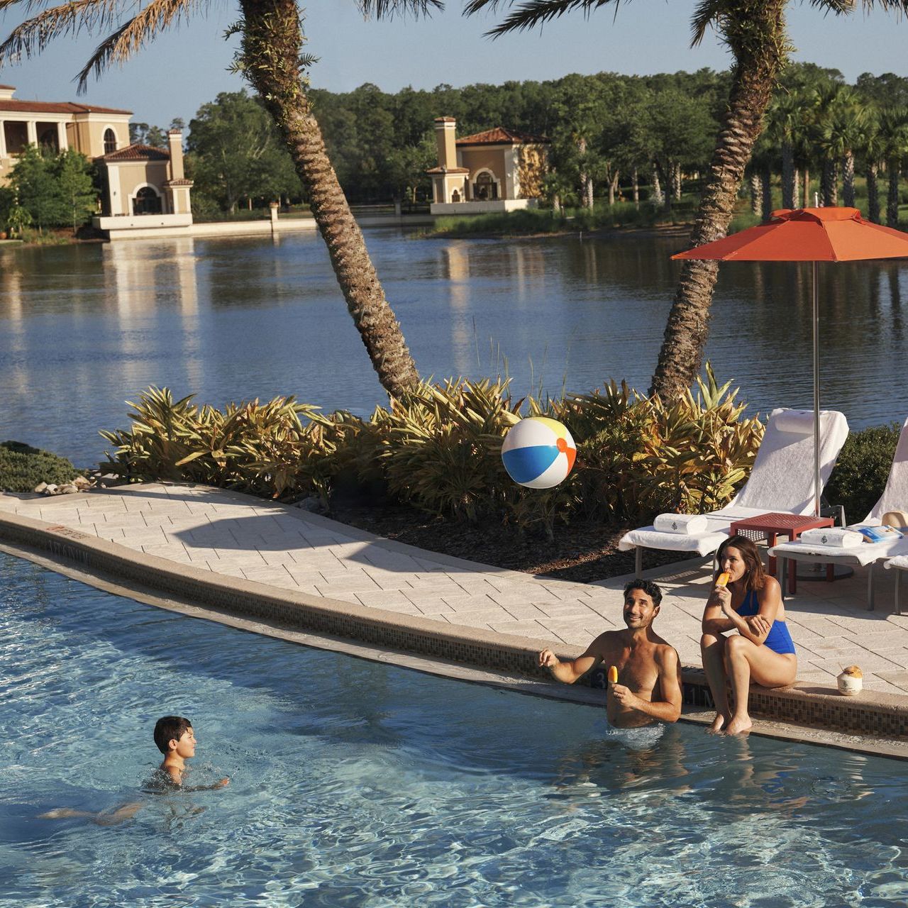 Luxury meets family-friendly fun at this AAA Five Diamond resort tucked away inside the Golden Oak community. Guests of all ages love Explorer Island, the five-acre water park with a lazy river, splash zone, waterslides and zero-entry family pool. Adults can slip away to the Oasis Pool, a serene, kids-free area with cocktails, cabanas and lake views.