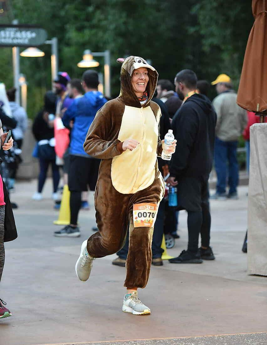 Sarah says she has a blast supporting her wife, friends and local community in this way and she plans to keep appearing as the T-Rex for races that pass through Hamlin. If you see Sarah on the course of your next race, say “hi,” take a photo with her, and tell her how much you enjoy seeing her incredibly unique brand of spectating!