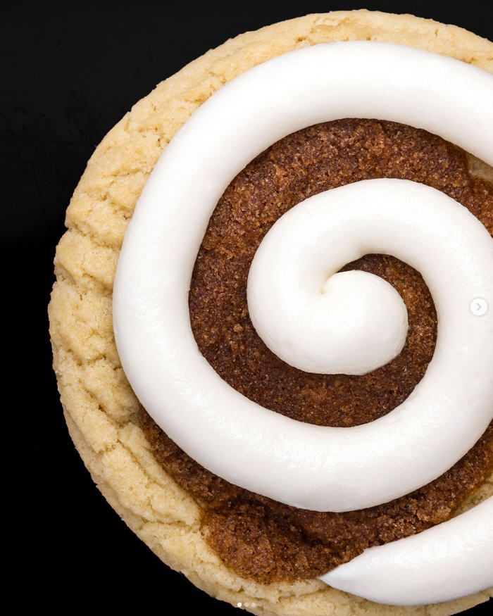 - Cinnamon Roll: A soft and thick cookie is covered in a layer of cinnamon sugar and a delicious swirl of cream cheese frosting.