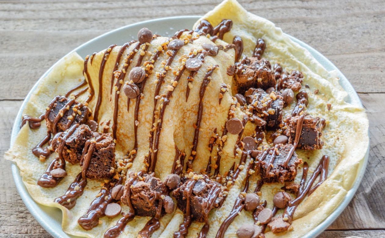 - The Berry Awakens: Black Raspberry Ice Cream, Brownies, Belgian Dark Chocolate Sauce, and Praline Crunch on a French crepe.